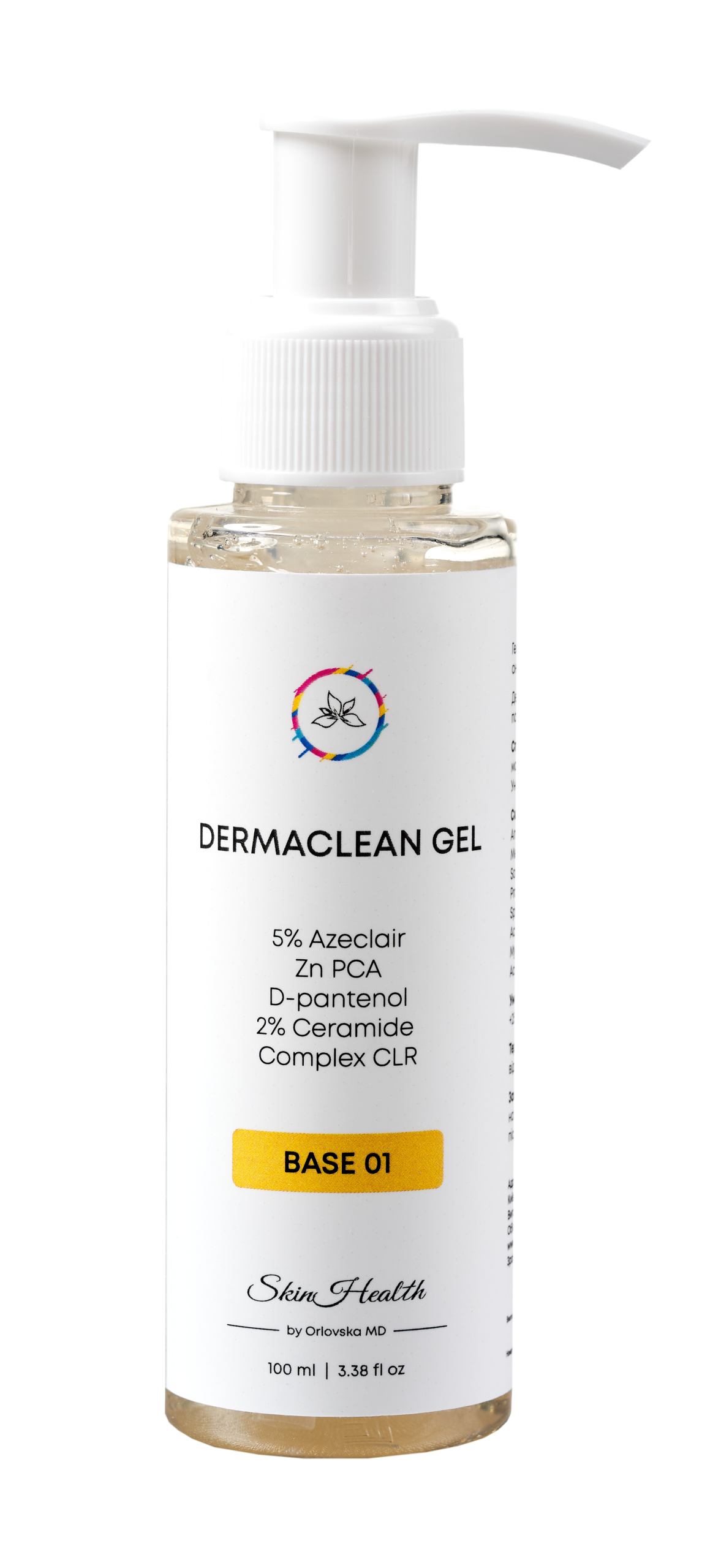 Гель для вмивання з 5% азелогліцином, цинком, D-пантенолом, антиоксидантами та комплексом керамідів.